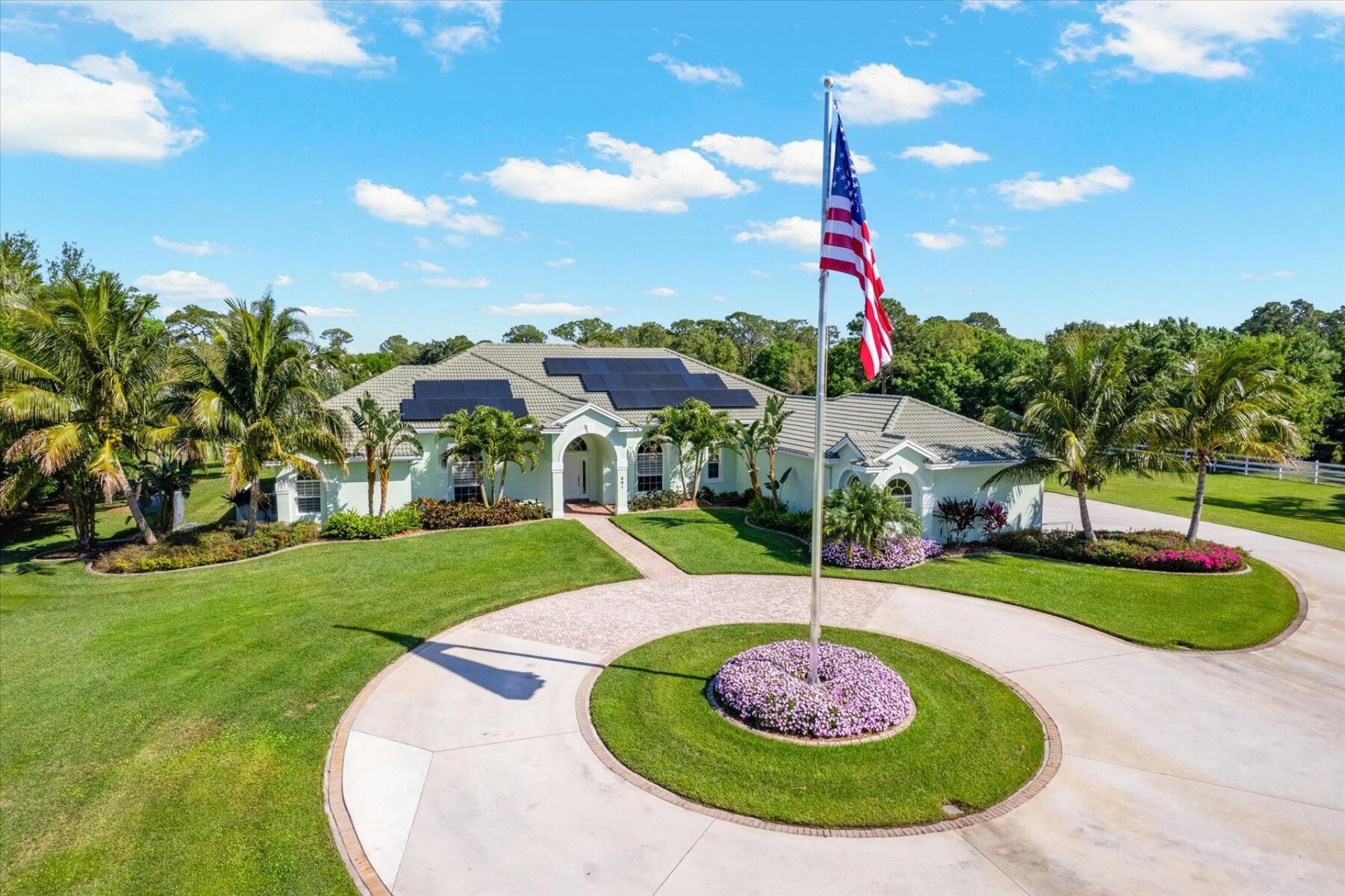 Edit mortgage details for a more accurate paymentAs you enter through the private gate a sprawling circular drive leads to this incredibly amazing, distinguished CBS one story home. The exterior was recently painted and the newly planted landscaping is exquisite. The double door entry reveals an open floorpan as soon as you enter. With 4152 sq ft of living space and a completely remodeled kitchen with two huge islands, shaker style cabinets and quartz counters, opened up walls and new flooring, this home is unrecognizable as to what it was. The ceilings are tall in all the major rooms and every single bedroom is oversized and has its own bath. The owners bathroom has also been completely updated as well as the bathroom to the second primary bedroom. There is a well organized 3 car garage in addition to the driveway that could almost accommodate the inventory of a small car dealership. There is a full house 60 KW Generator and a 1000 gallon propane tank in the ground. The roof is original but features solar panels that will remain with the property and help cut down on electric expenses. Owner is willing to give a credit towards a new roof. The pool was redone and there is also an outdoor shower that will remain. Stuart West is an upscale gated equestrian community located adjacent to Cobblestone Country and the Fox Club in Palm City. The community features a playground that is located across the property, a community boat ramp to the C-23 canal, a 10 acre equestrian center and a 24 hour manned gate that is shared with Cobblestone.